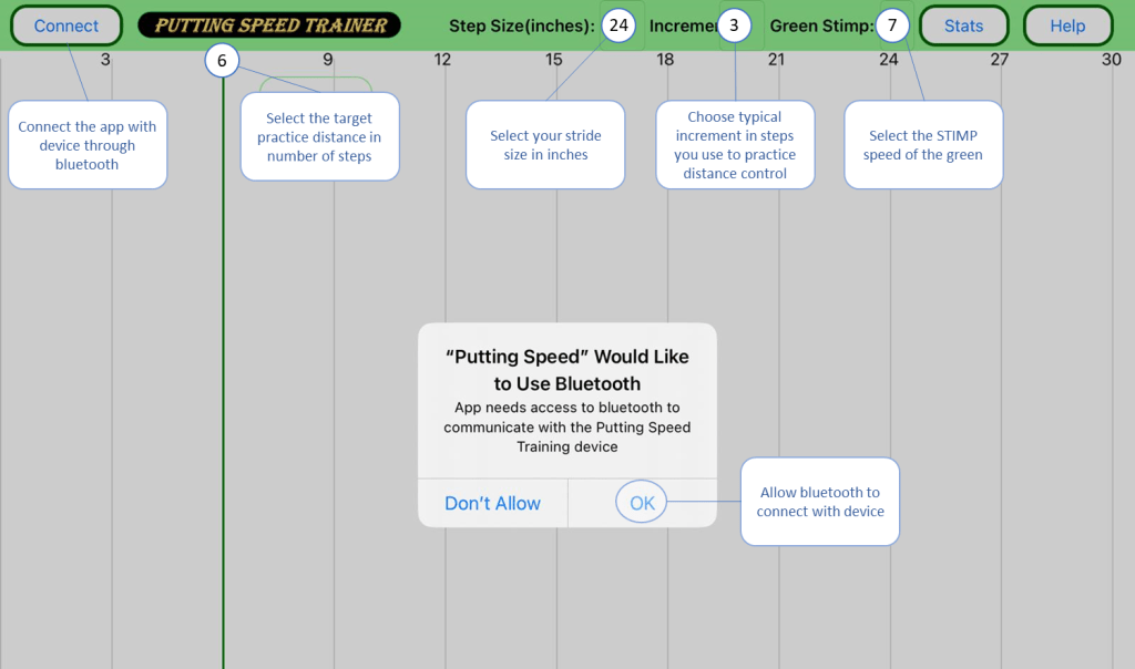1. After receiving your device, please download the Putting Speed App from the Apple App Store. We will start supporting the Android app soon.